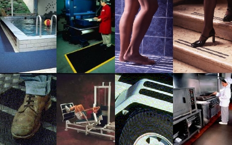 7.7.5.9 "Los accesos y pasillos deben estar recubieros de material antideslizante que sea efectivo incluso con humedad o aceite".